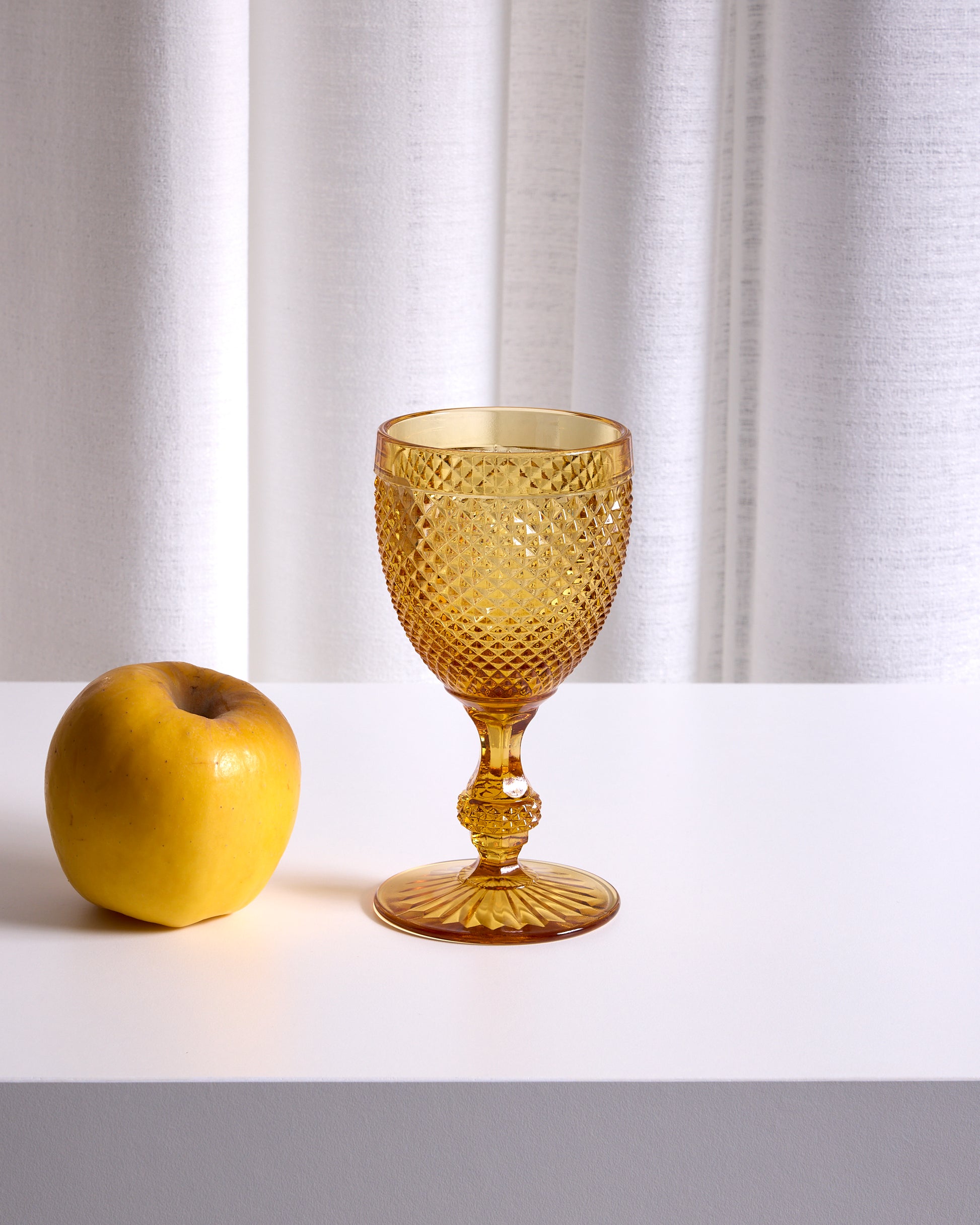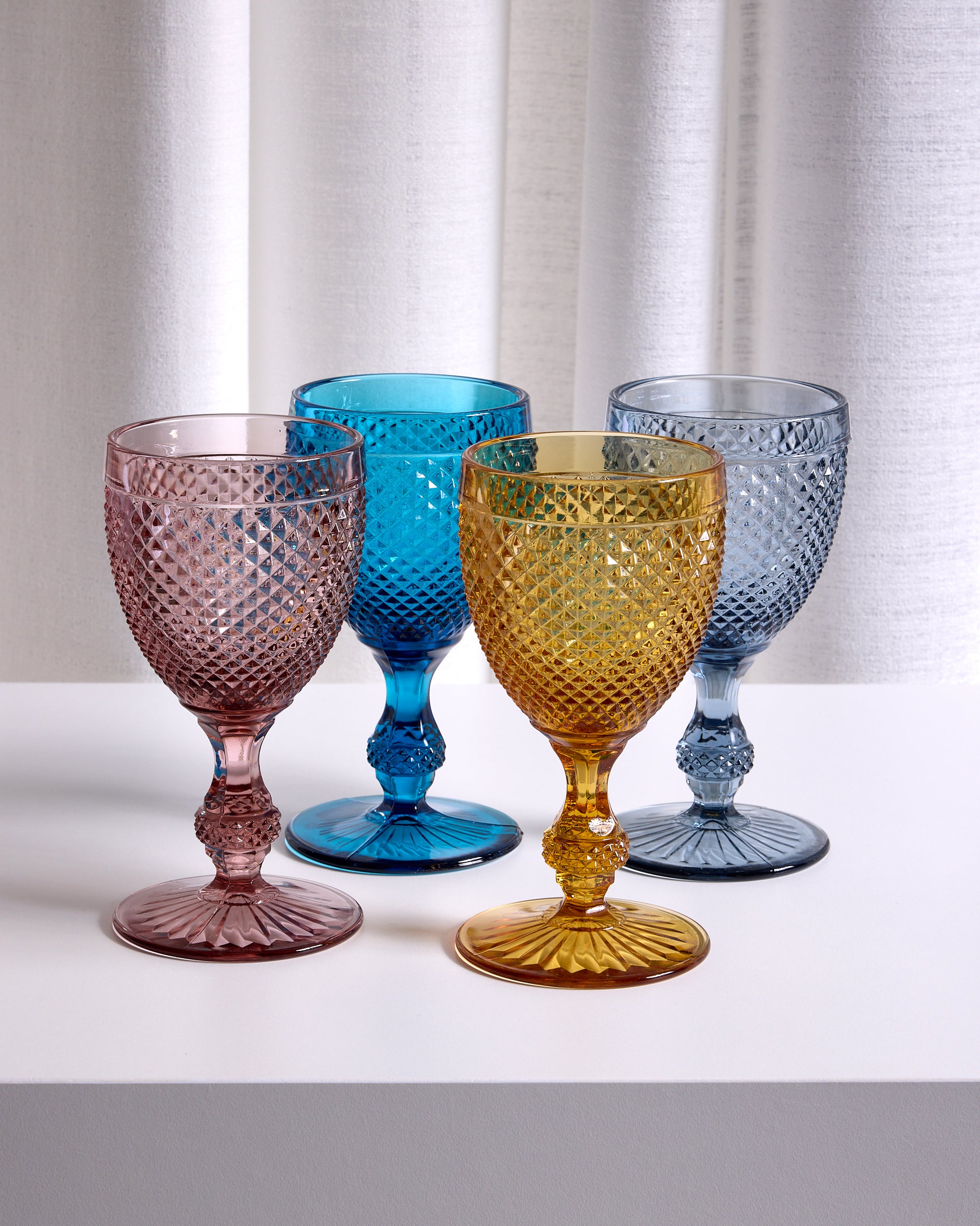 The Bicos Goblet set in the universe of diamond-tip manufacturing, was produced in the nineteenth century, through manual cutting techniques. Later the set began to be produced by the press method, which lasts until today. Handmade from Portugal