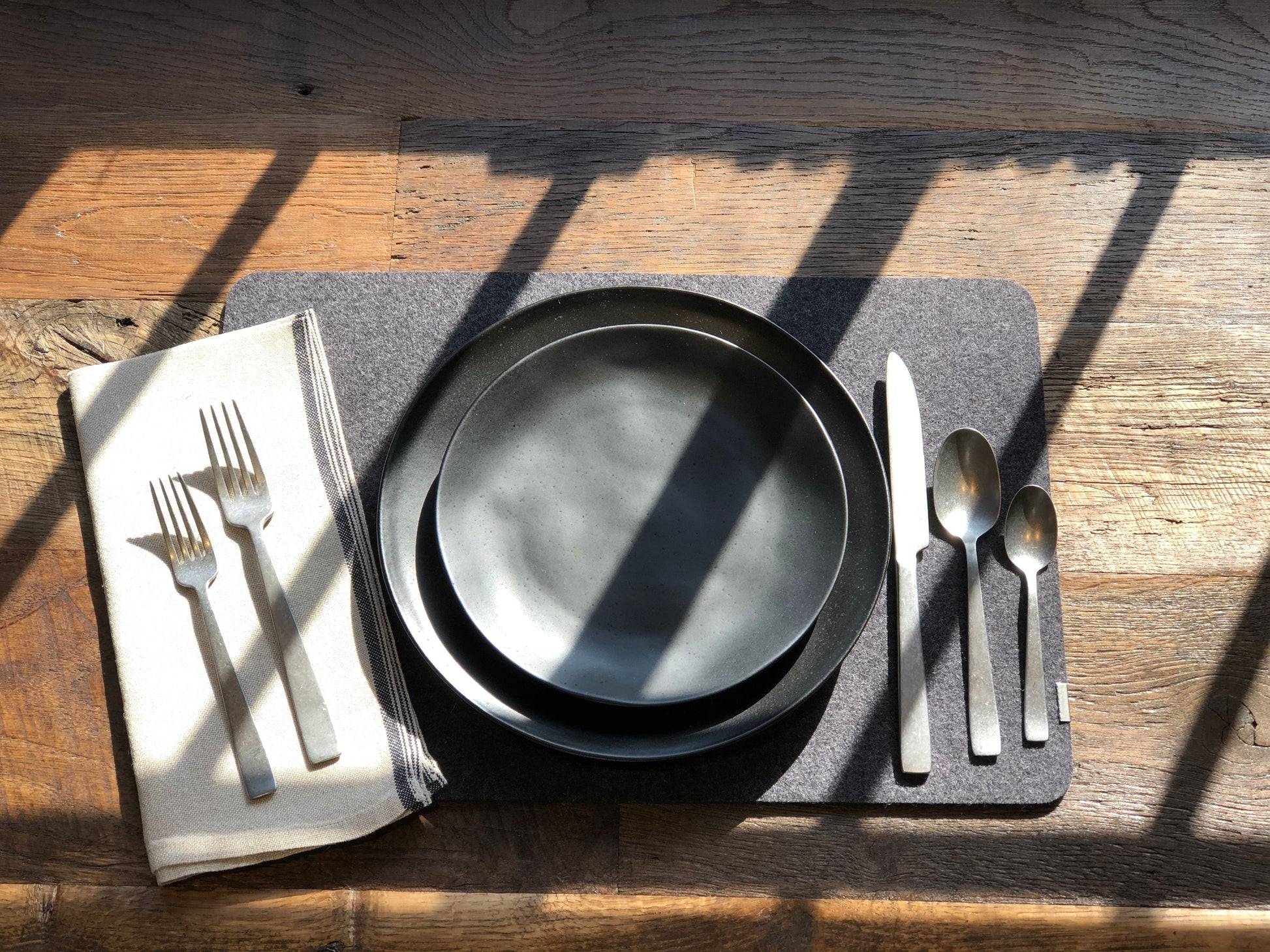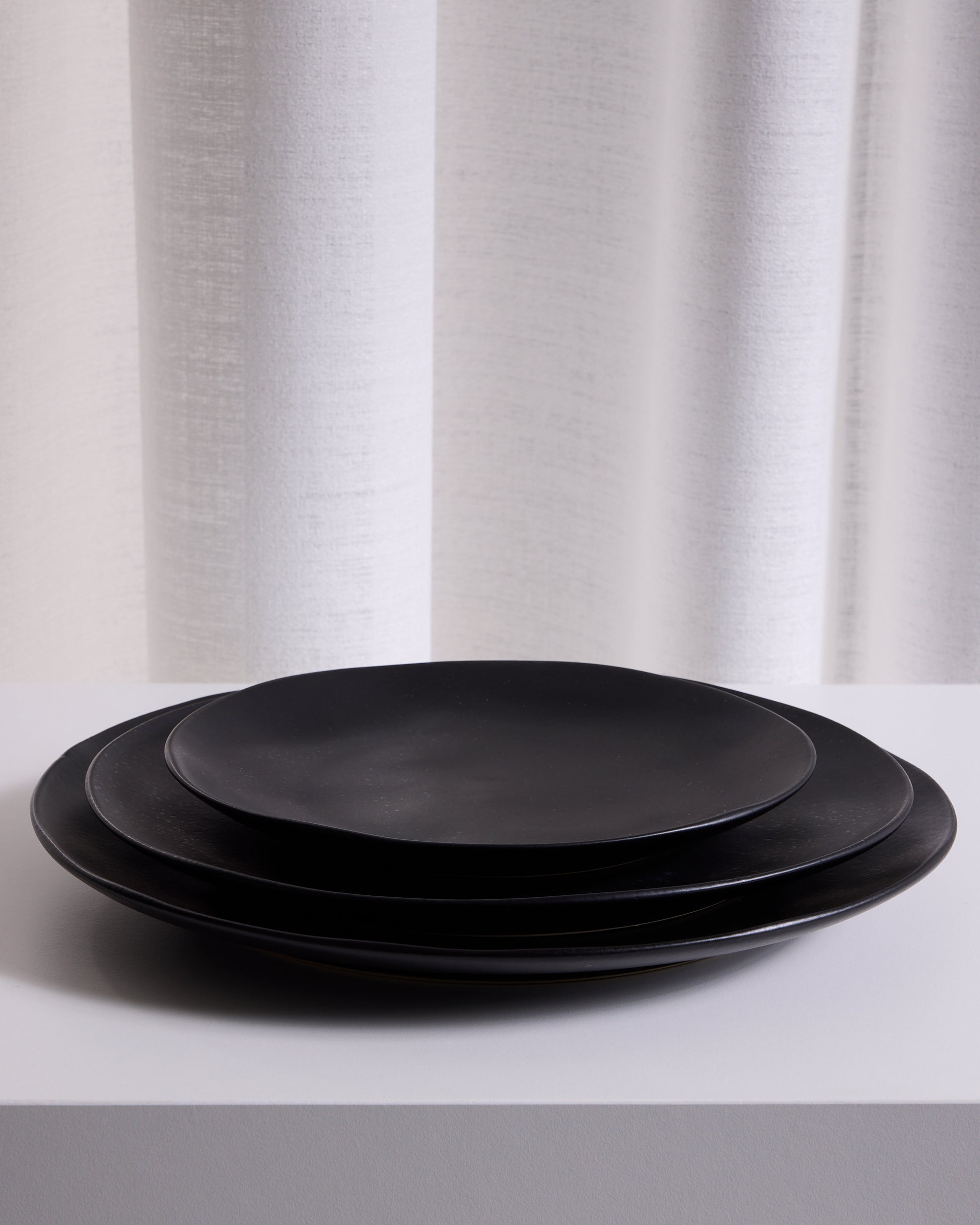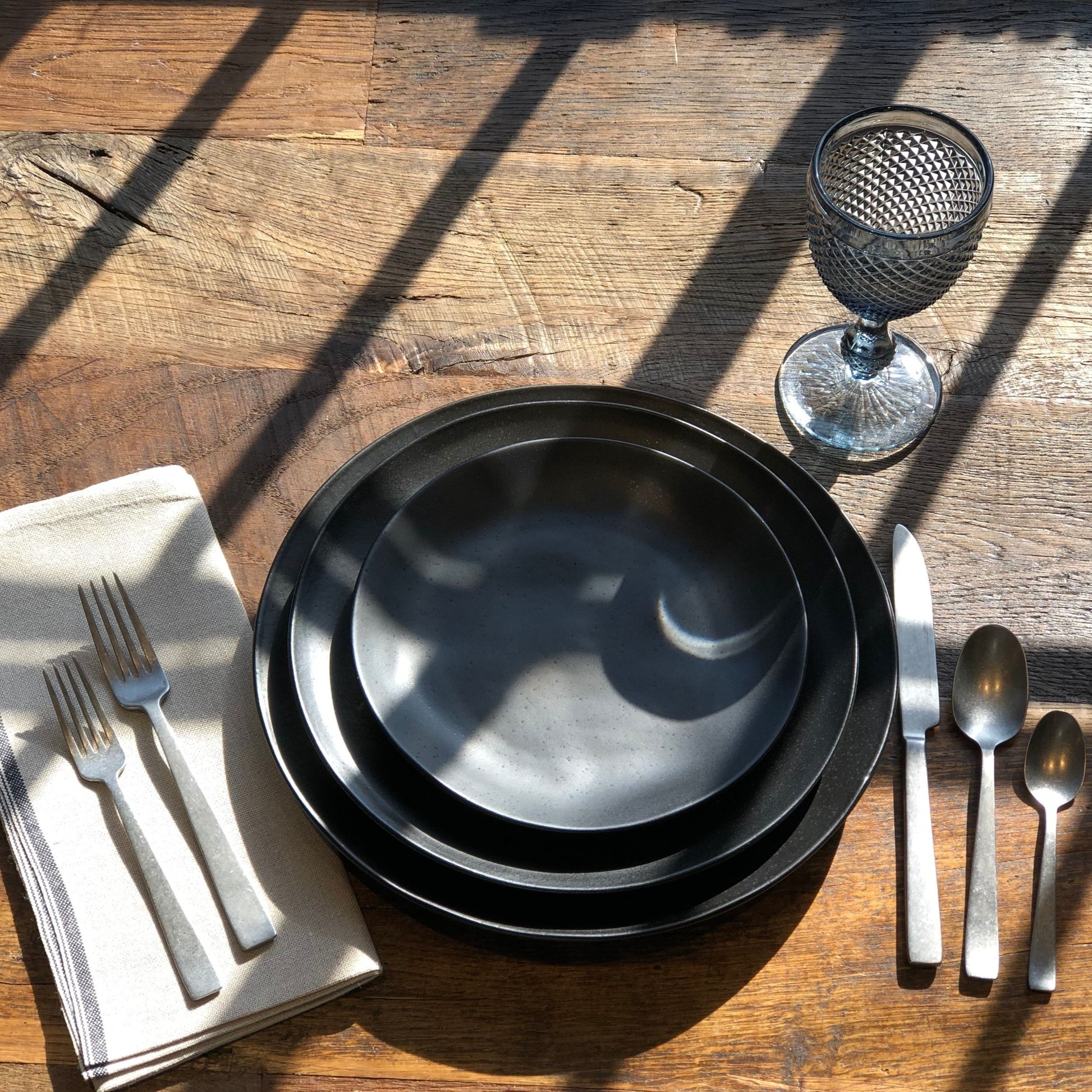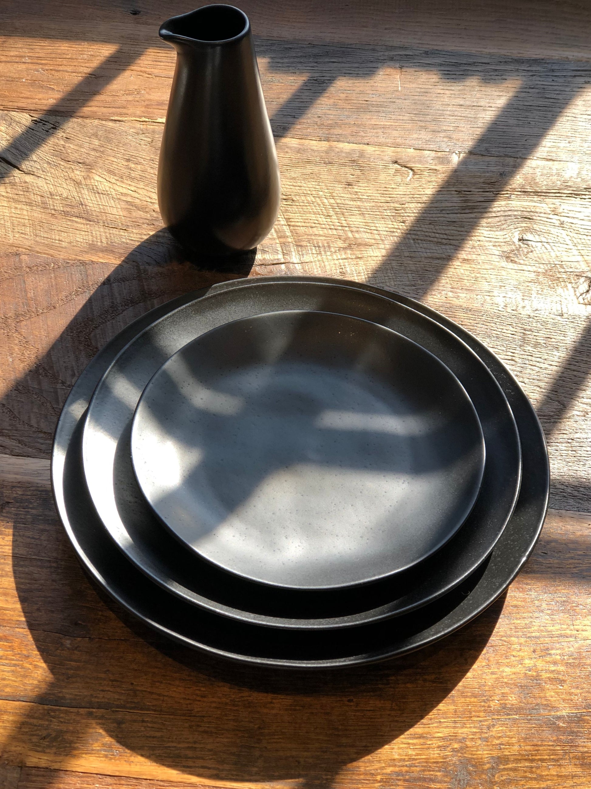 Inspired by the shapes and colors of the French and Italian Riviera landscape. The organic quality of these stoneware dishes in this handsome dark color dresses any table perfectly. Handmade in Portugal.