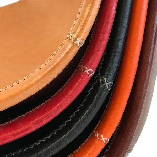 Finish: Variety of Leather (Natural, Brown, Black, Red, & Orange), Thread Option