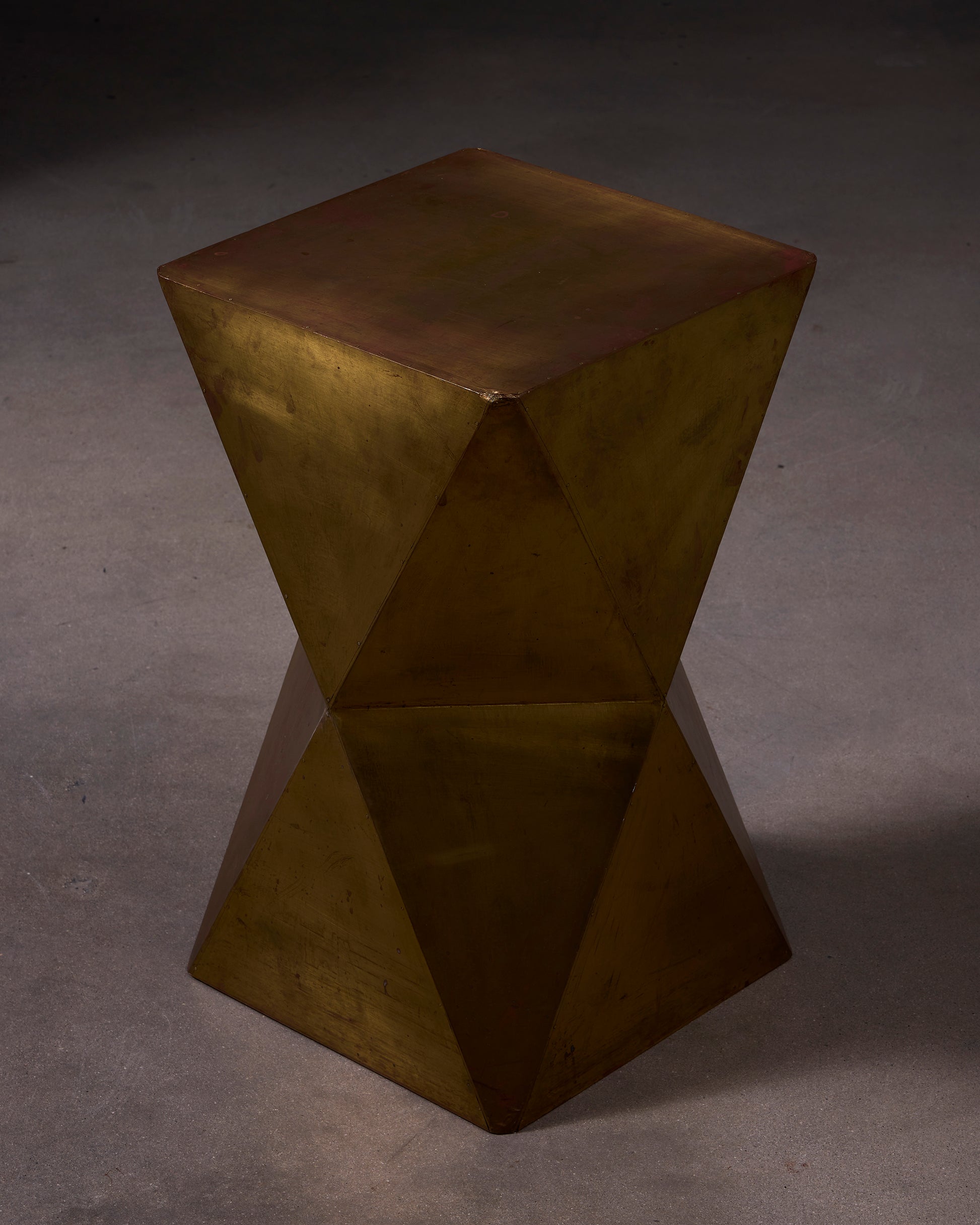 Elevate your space with this sculptural brass-clad accent table—perfect beside a sofa to showcase decor, plants, or books, and versatile enough to use as a stylish stool when entertaining.