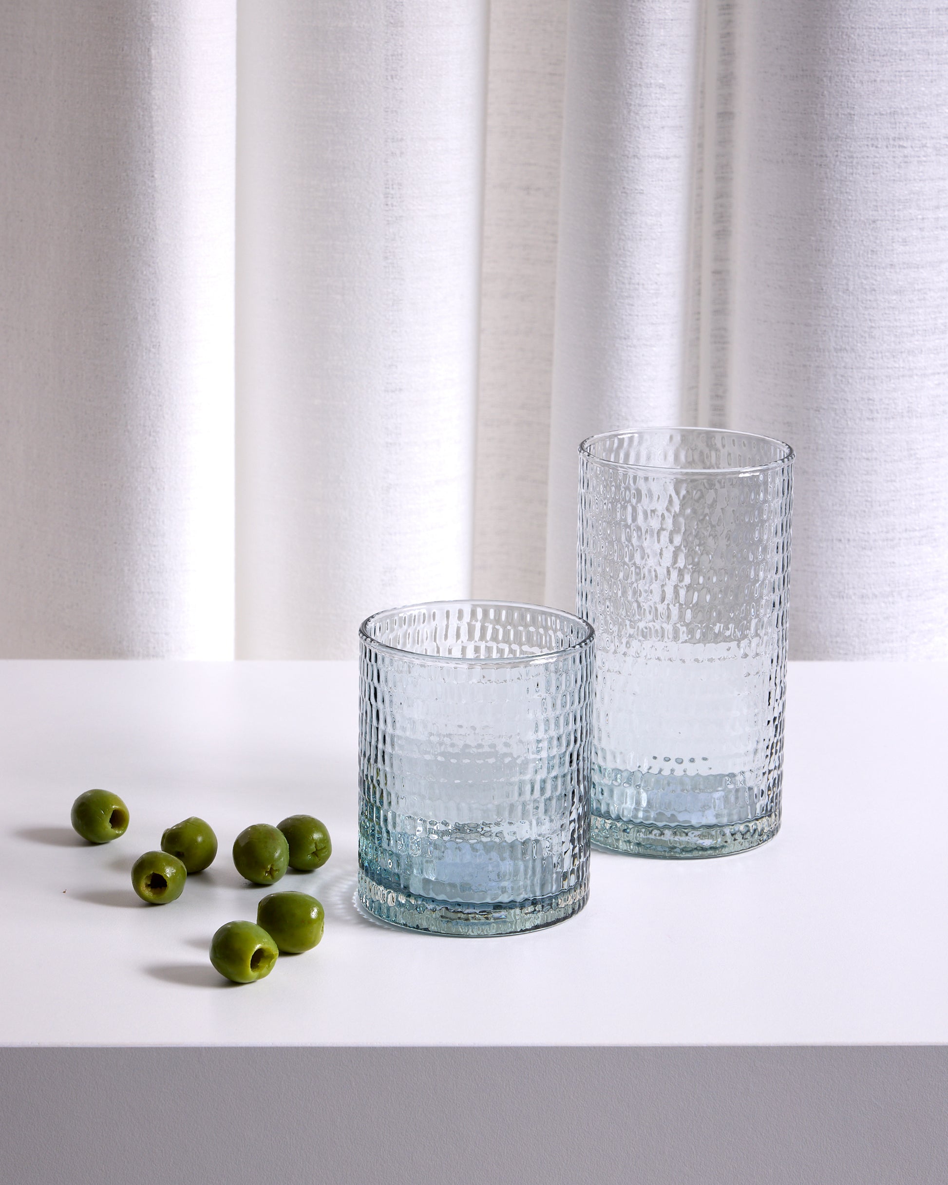 Add an air of masculinity with the simple, straightforward Duncan. Whether you're serving water with ice or Scotch on the rocks, these crocodile-textured glasses bring a classic bar feel to your fete.