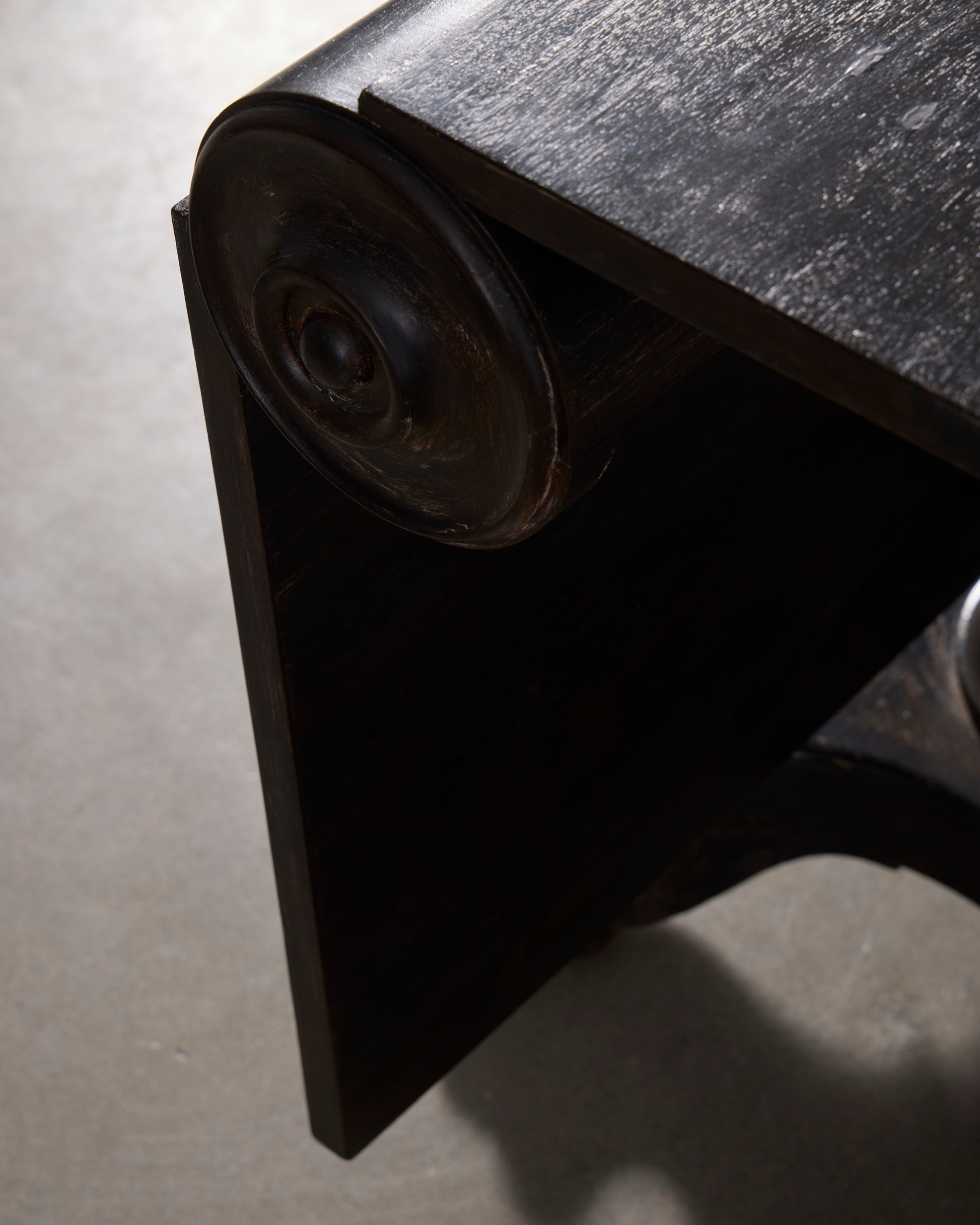 Distressed black stained wood