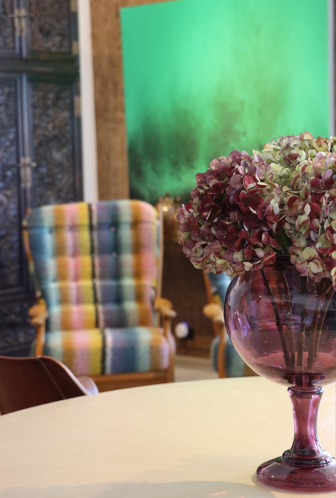 Empty or filled with flowers, one in a window highlights the color or on a table brings height and drama to a setting.