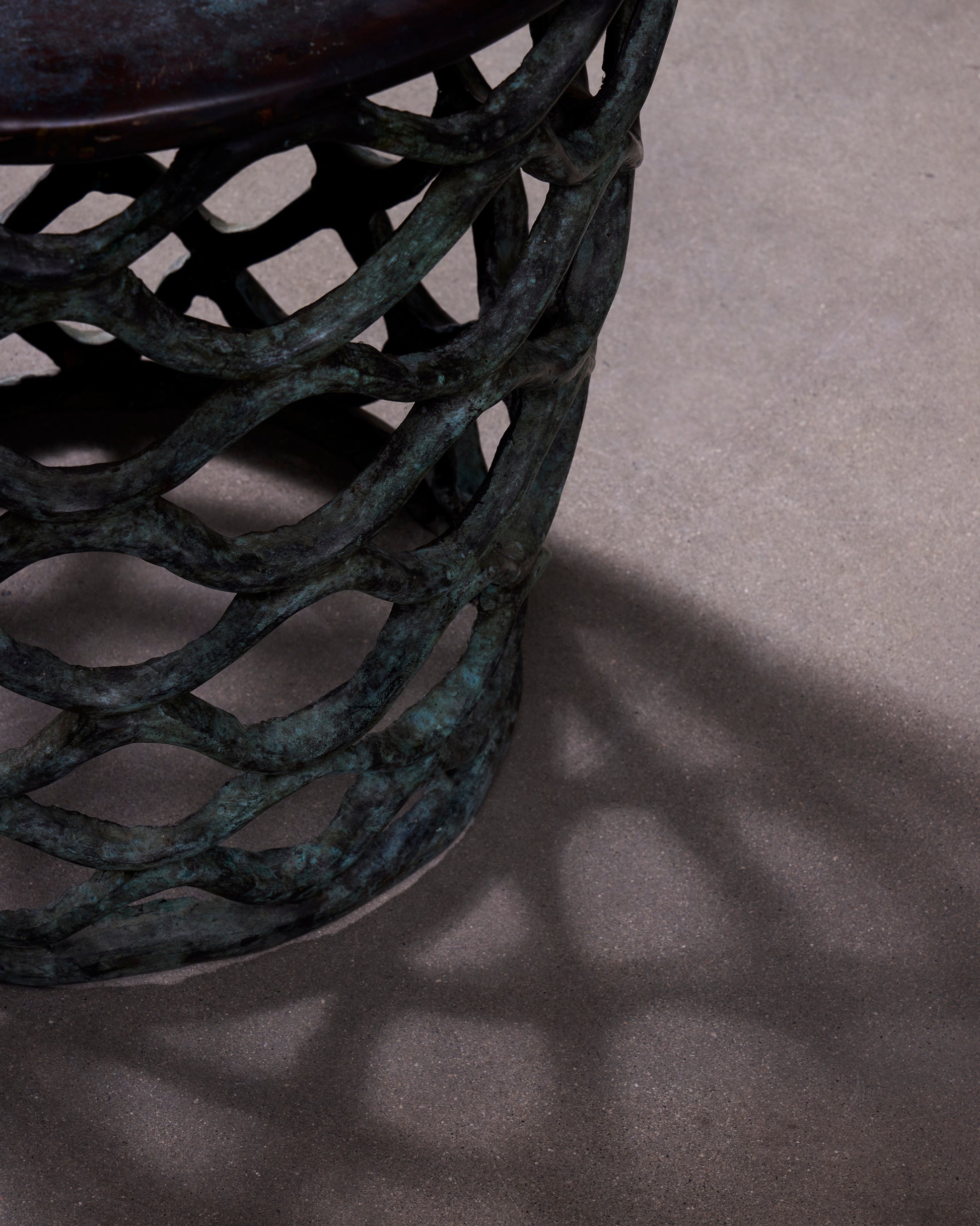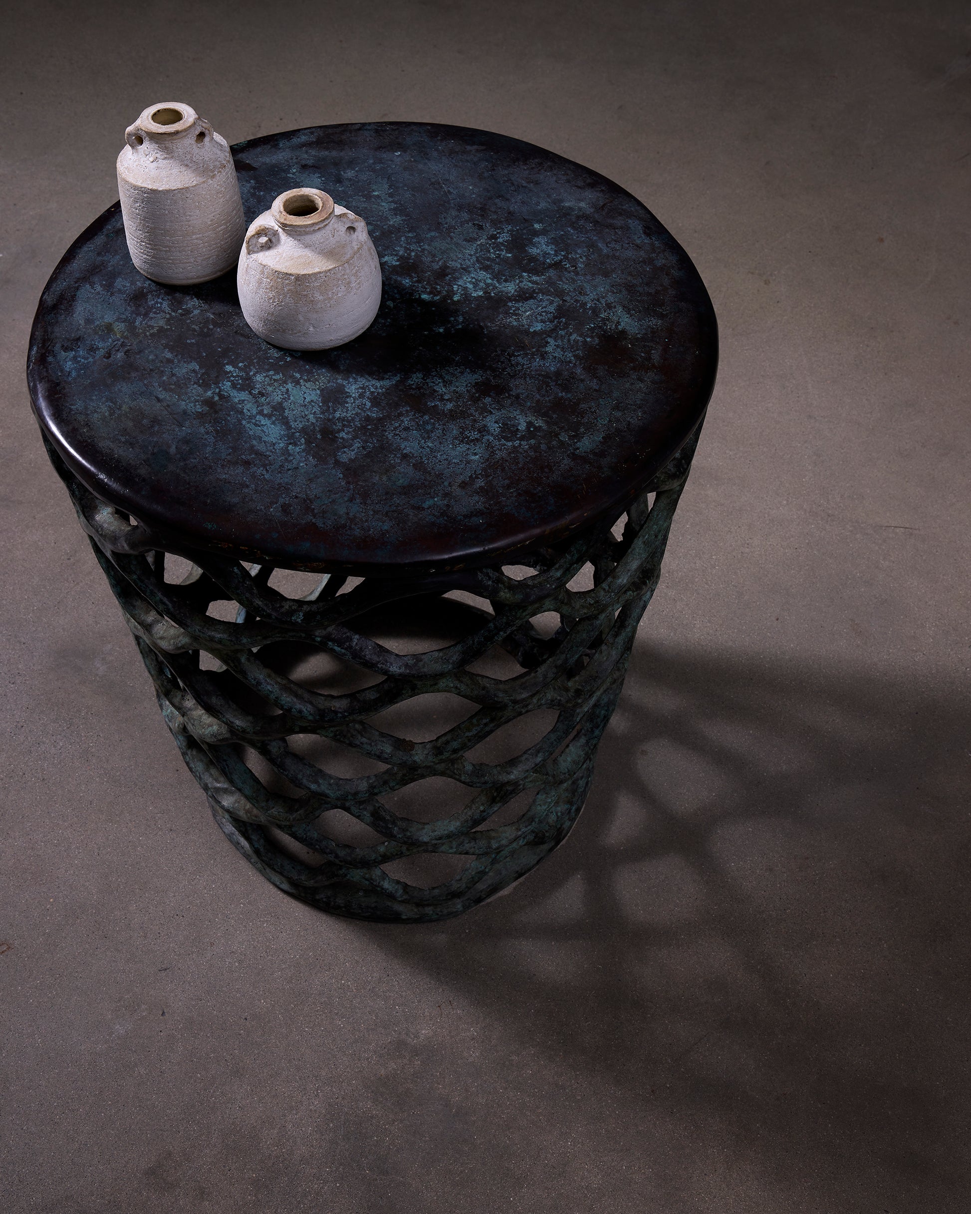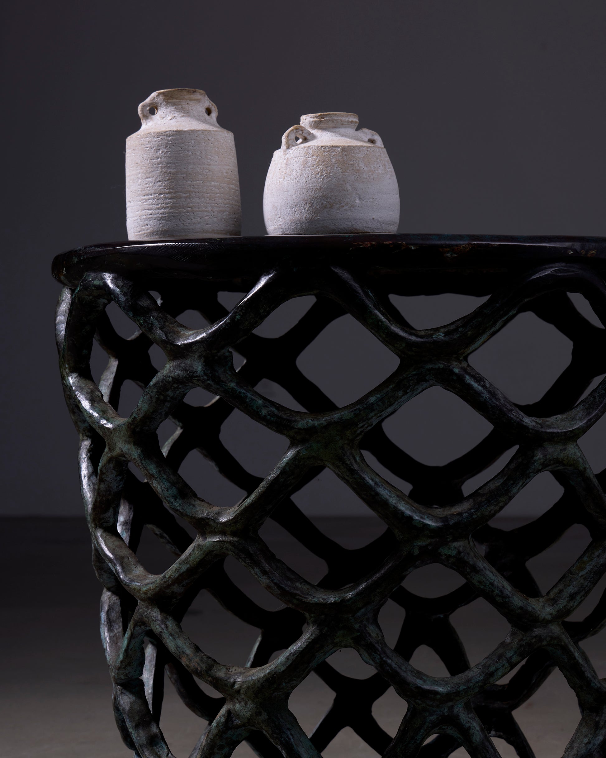The Bronze Lattice Accent Table features an Antiqued Brass finish that blends the warmth of bronze with the captivating charm of a lattice motif. Its intricate design adds visual interest, making it a versatile piece for any space.