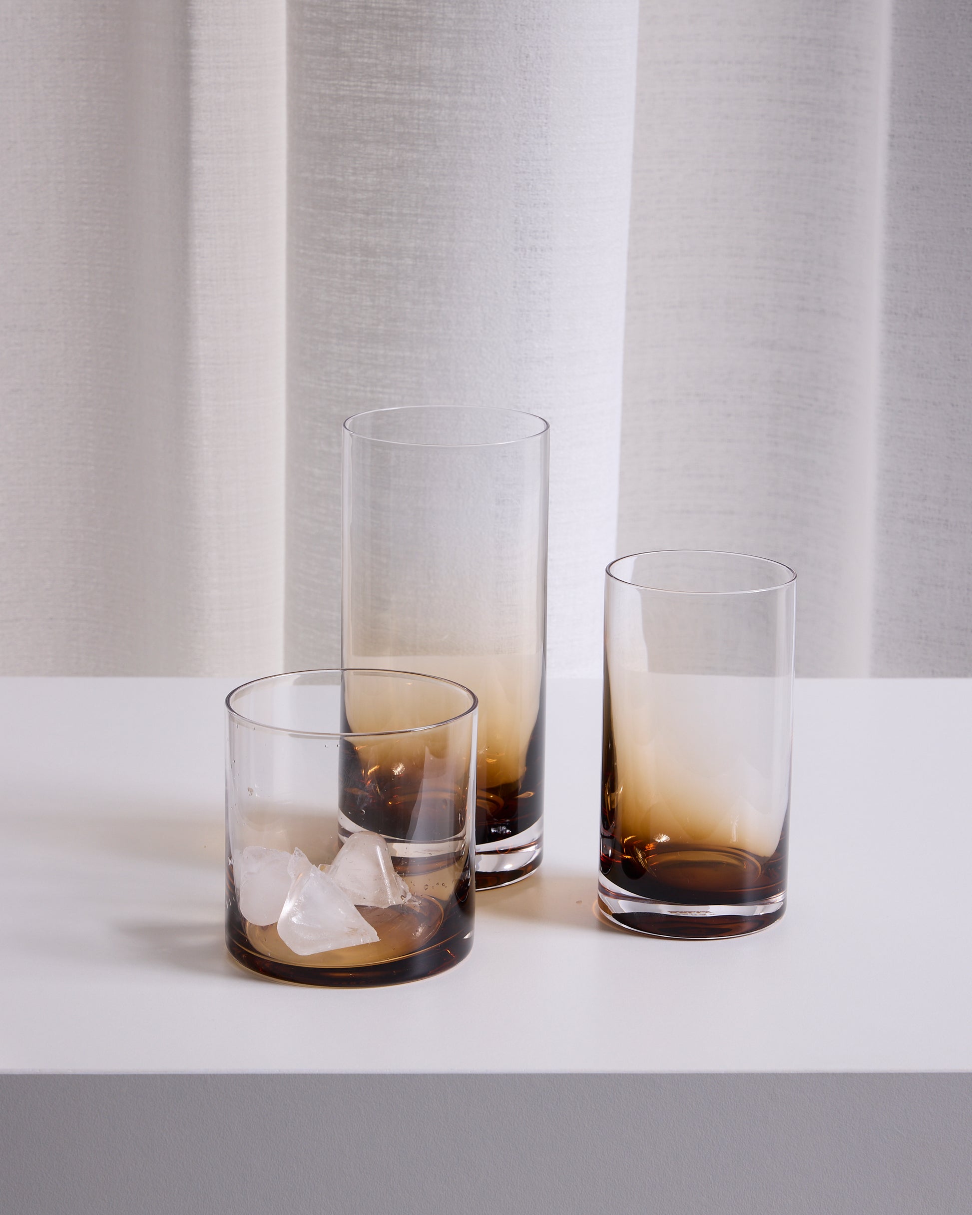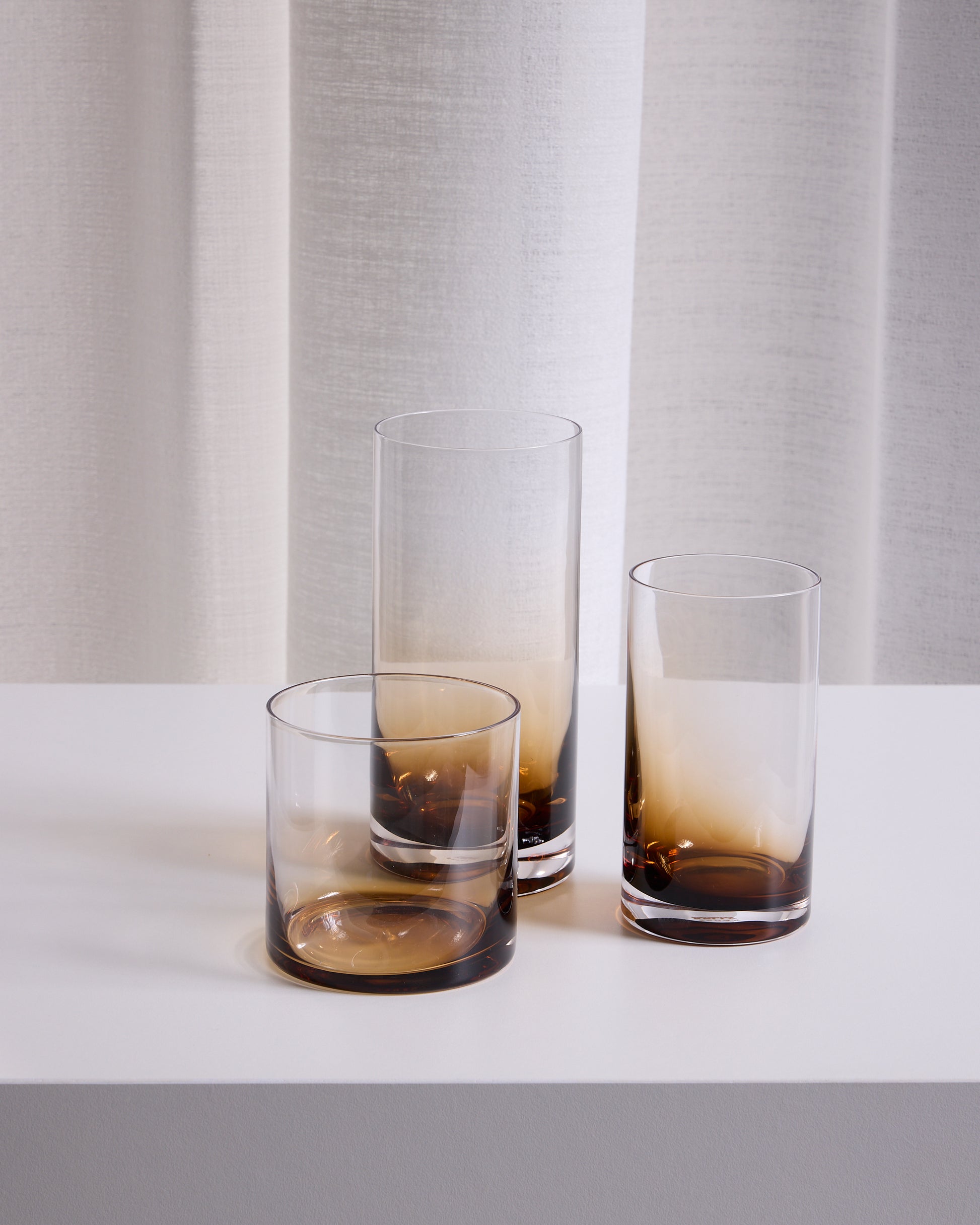 Expertly crafted, these glasses feature intricate textures and warm amber tones.