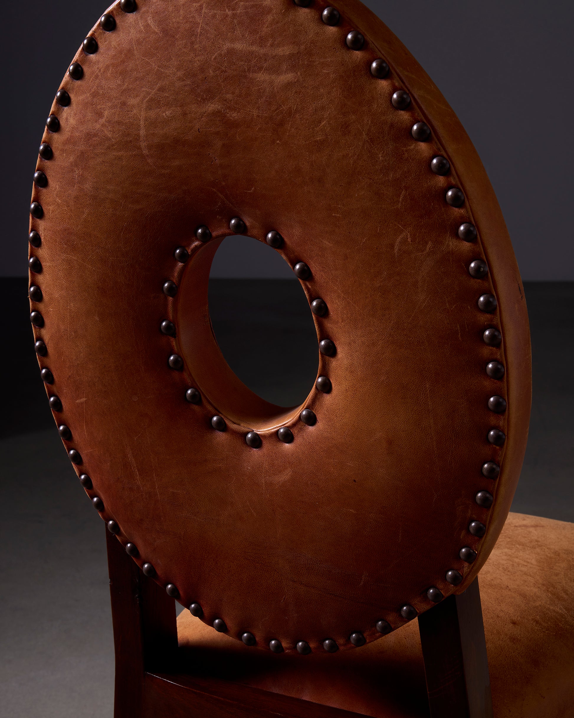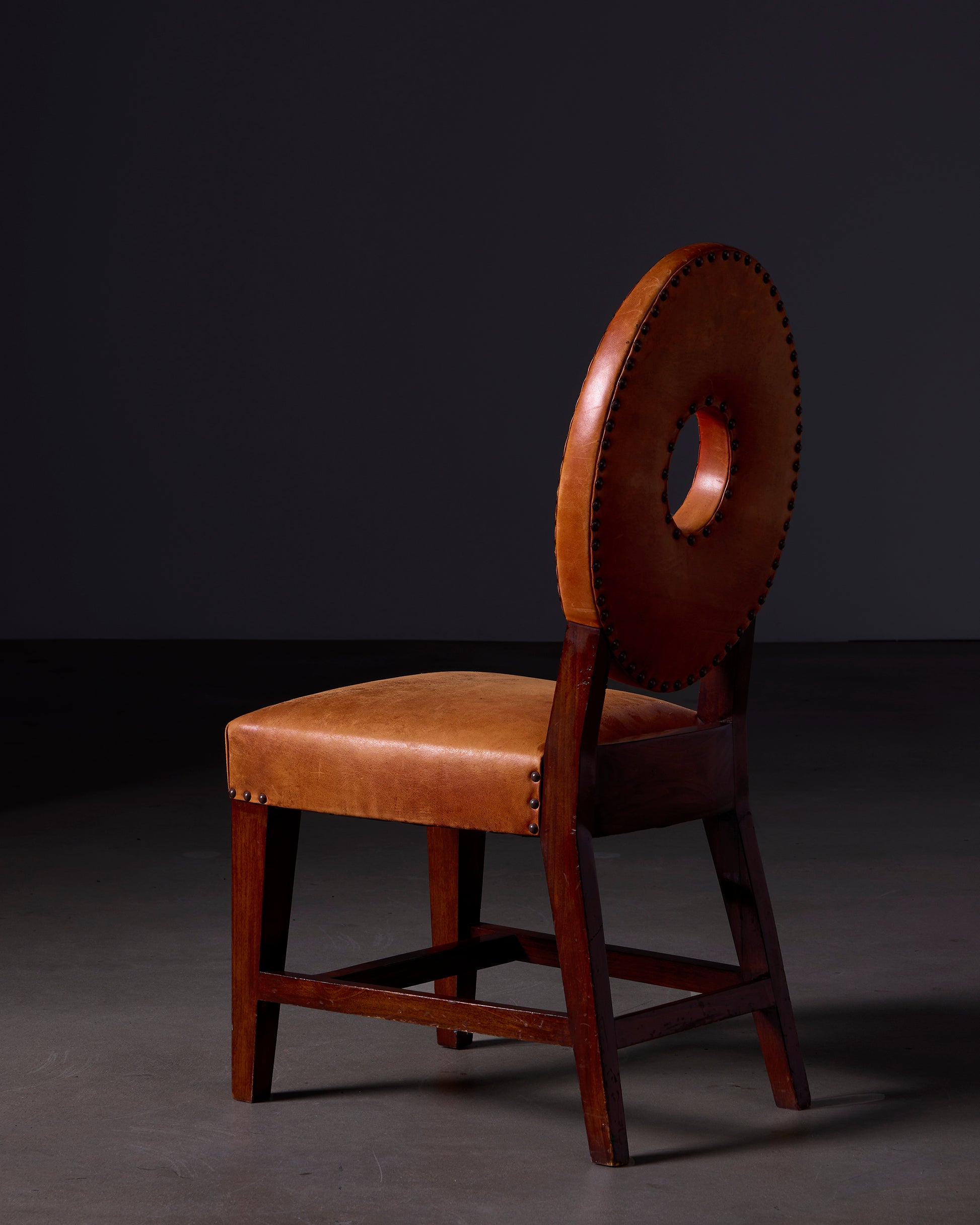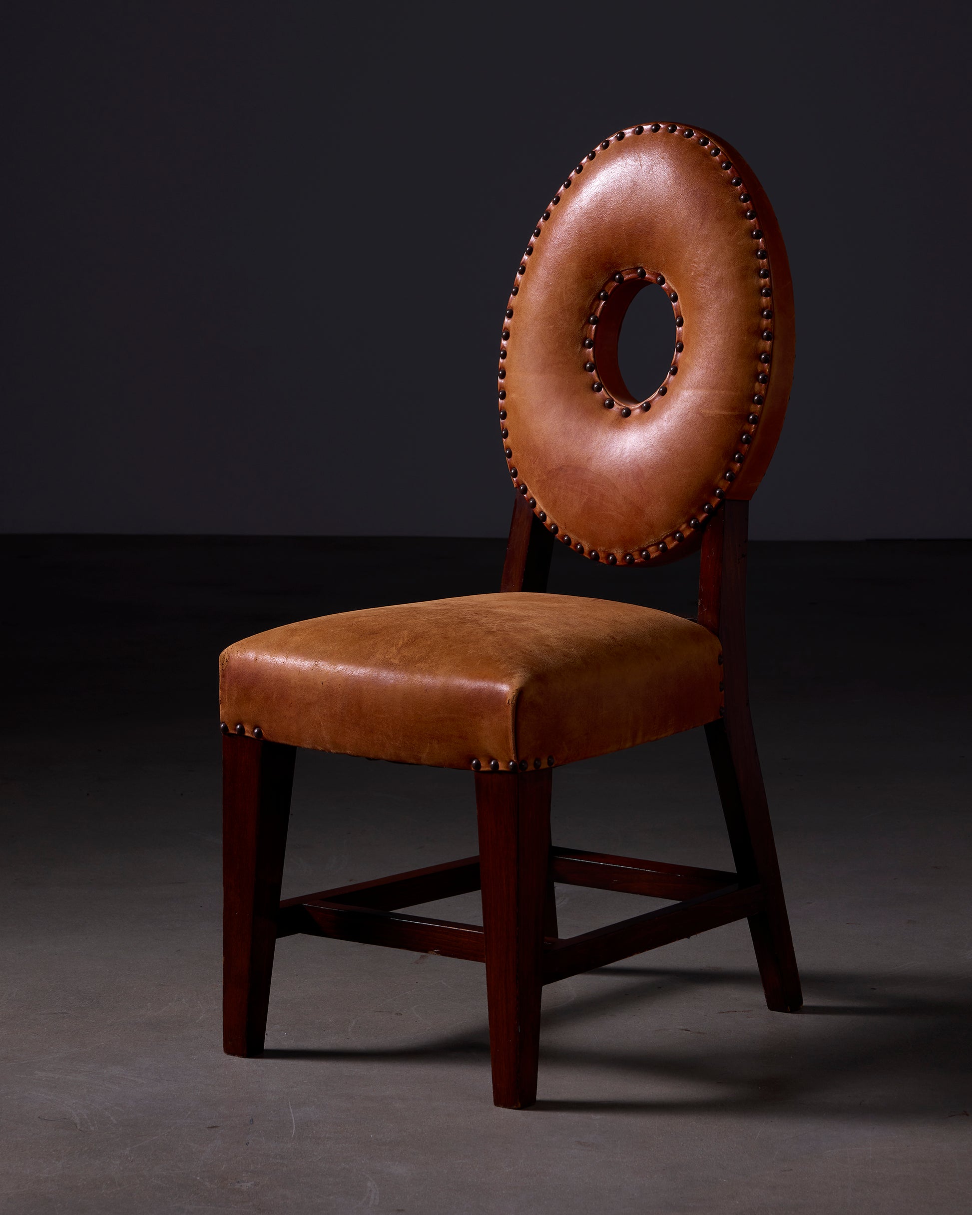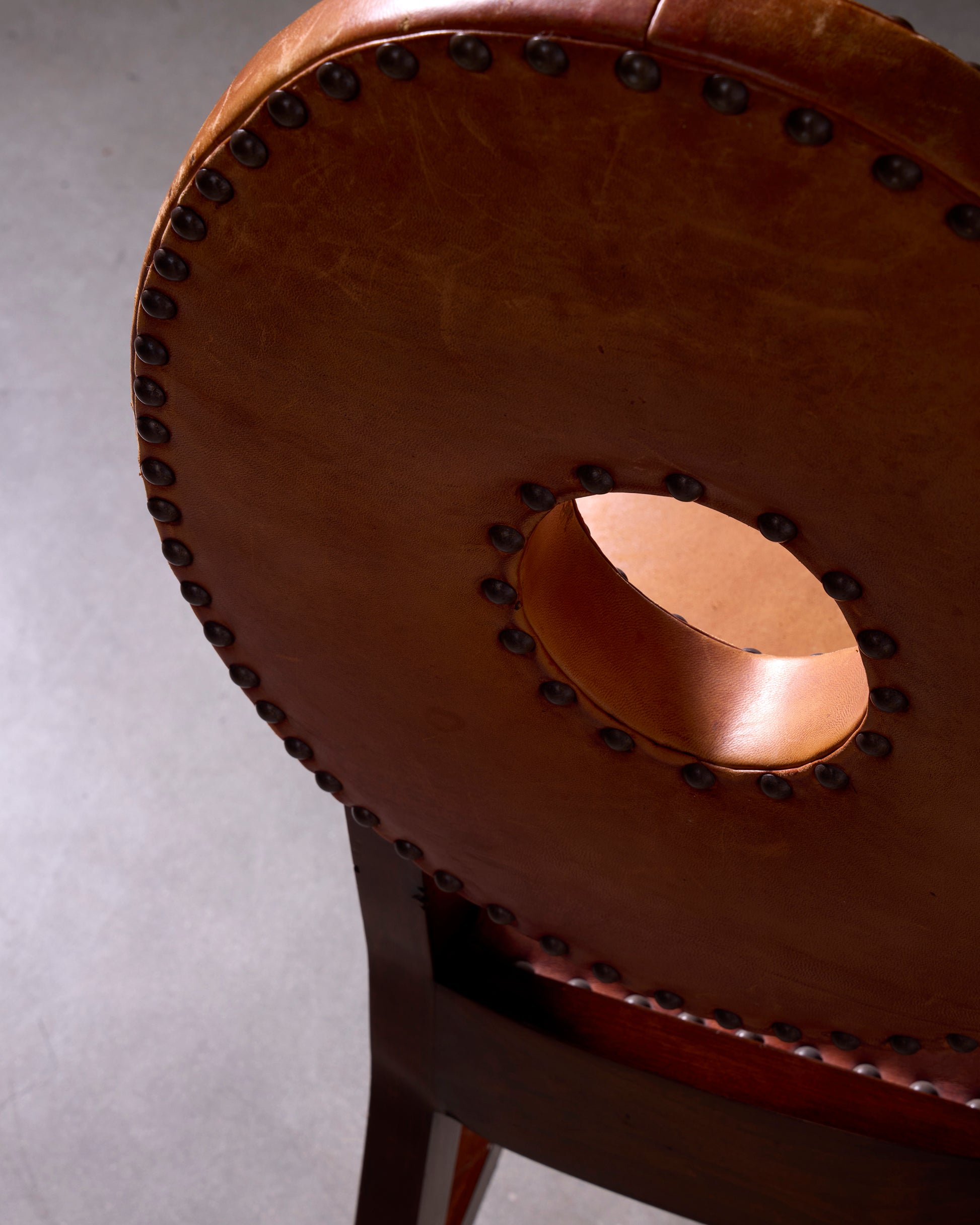 Oval Back Dining Chair in Natural Linen Antique Brass Nail.