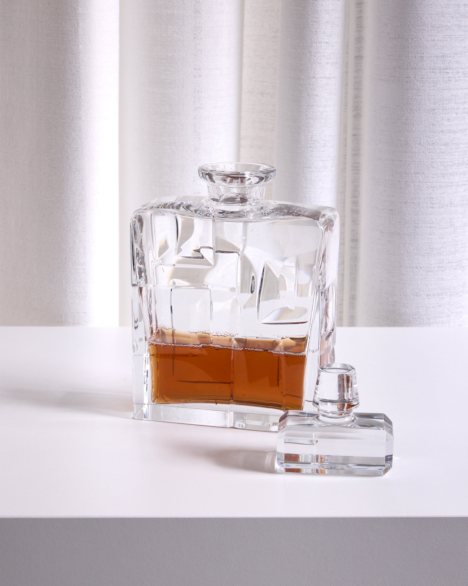 Portrait Glassware by Vista Alegre is a contemporary collection playing with the texture of cutting, creating graphical overlays that appear as floating squares etched in the glass. 30% Crystal, Made in Portugal.